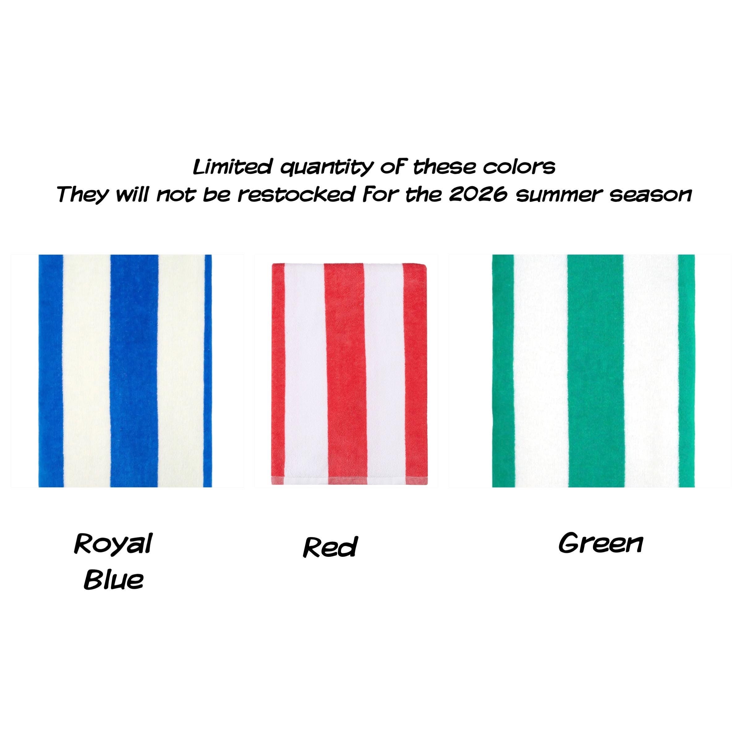 This listing is for one 28”x58” personalized light weight, quick drying pool/beach towel. This striped towel is offered in a variety of colors (blue, magenta(pink), Teal, Lavender, orange, and green) and embroidered with ONE name in a big 4” font and is available in your choice of a Thread color for the name! The colors of the these towels are bright and vibrant and will make a great addition to your pool or beach bag. They also make great graduation gifts, birthday gifts, house warming gifts or any occasion that requires a gift that you want to stand out.