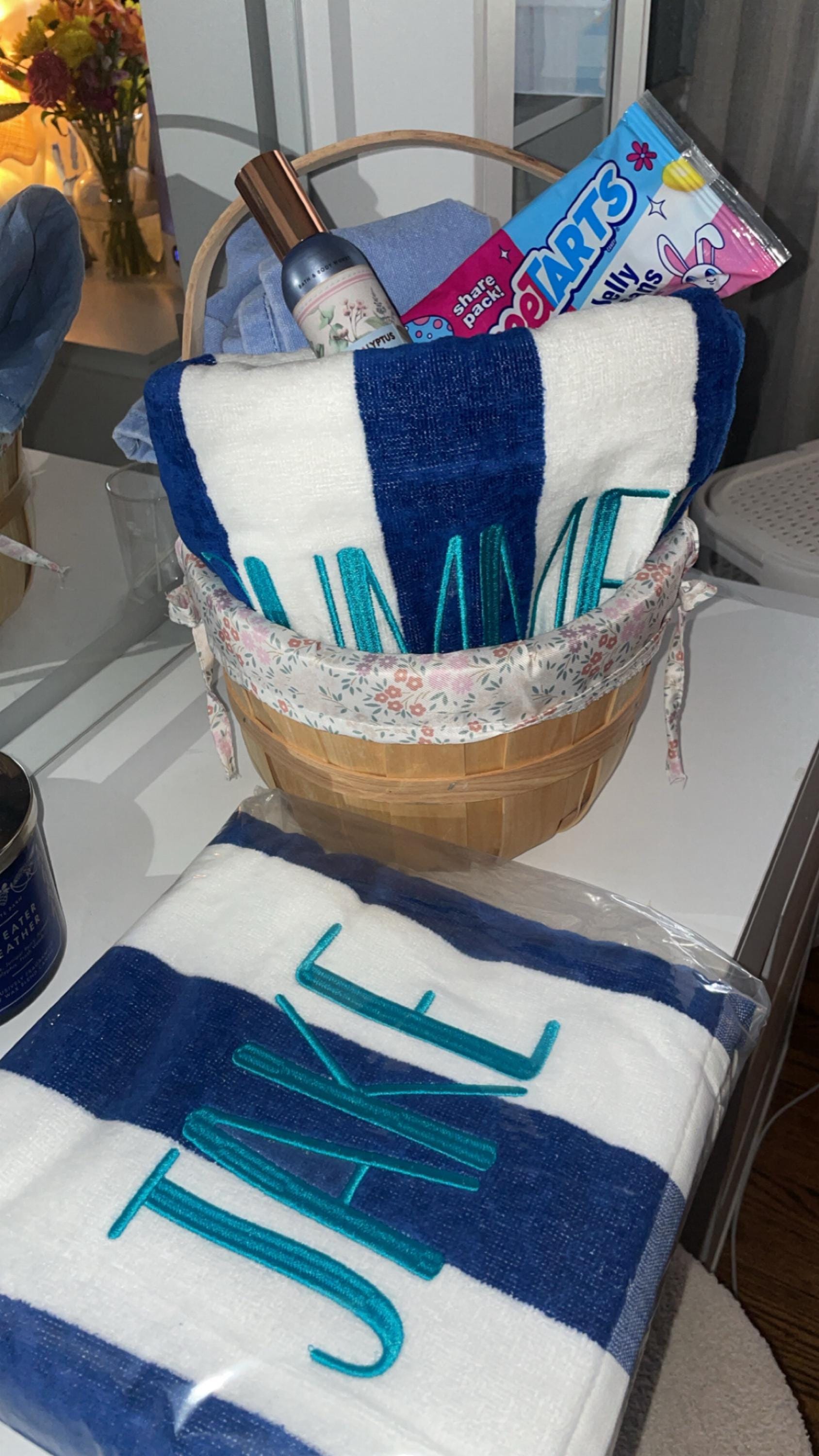 This listing is for one monogramed/embroidered towel only, all other items shown in the photos are props and are not included in the sale.