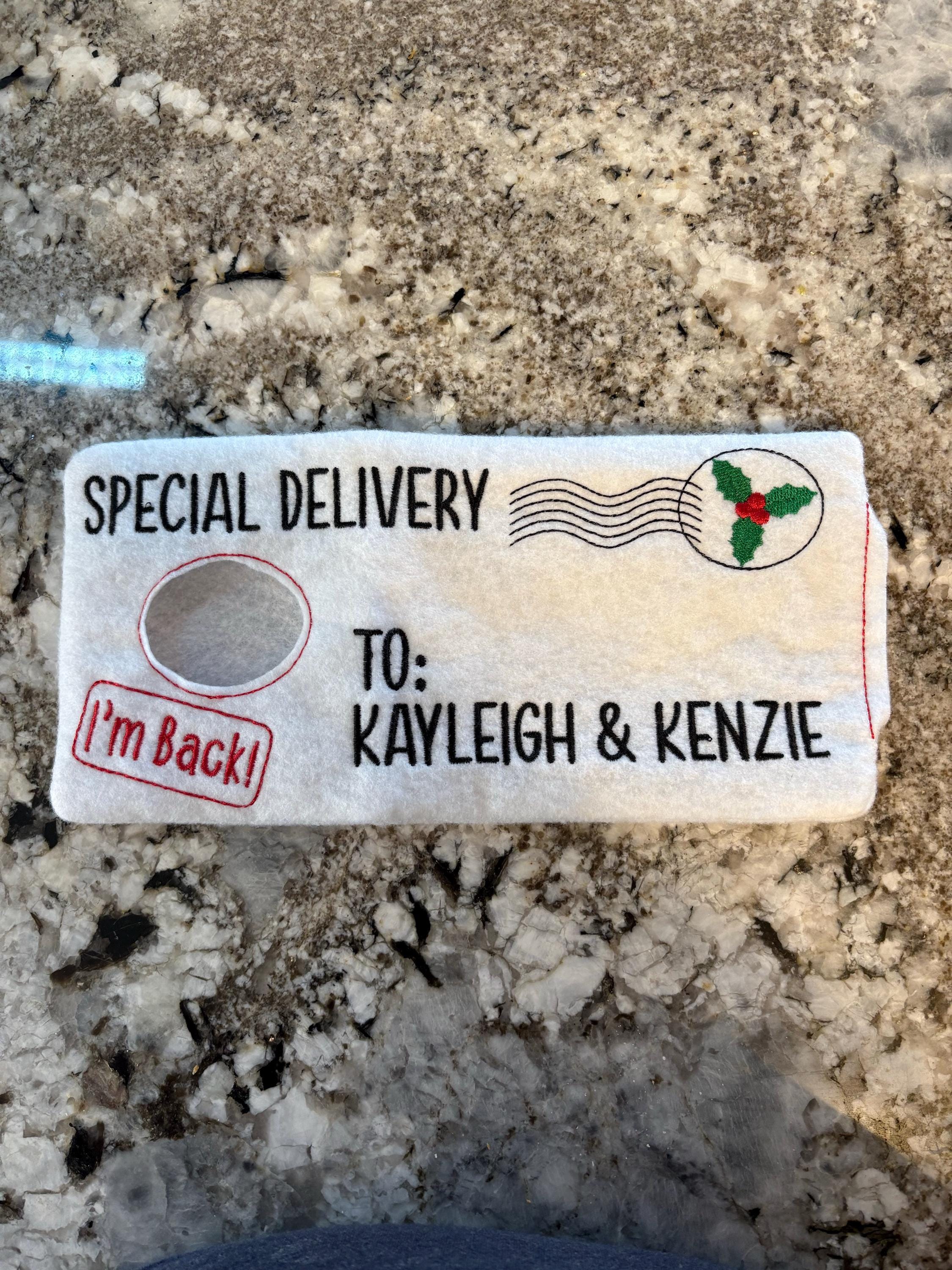 This listing is for ONE personalized embroidered Felt Shipping envelope with a Holly Berry "stamp" and is offered in White felt or brown felt for your Holiday elf arrival.. These envelopes are the perfect way to ship your elf to your child and have been sized to fit most Holiday Elves.